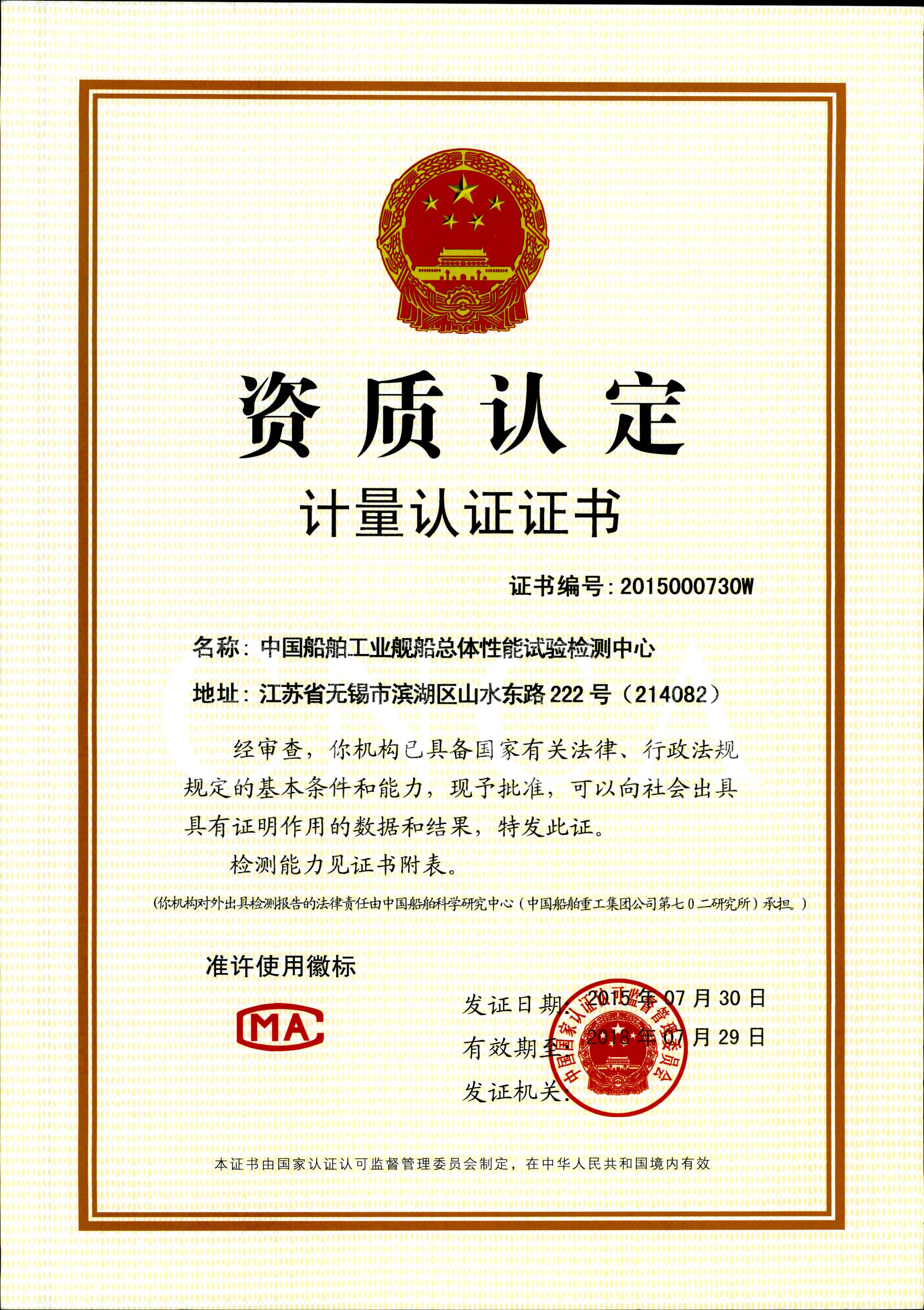 中国船舶工业舰船总体性能试验检测中心