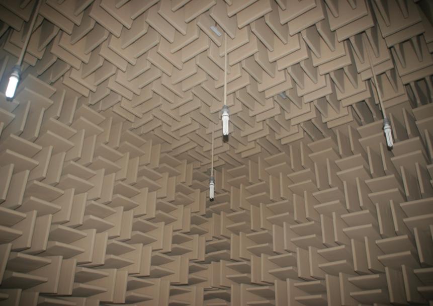 发声室,5.82m×5.2m×4.4m(高),混响时间T,1.54s≤T≤3.53s;声场不均匀性,2.73dB(最大值);背景噪声,15.7dB(A);双隔声门隔声指数,56dB。