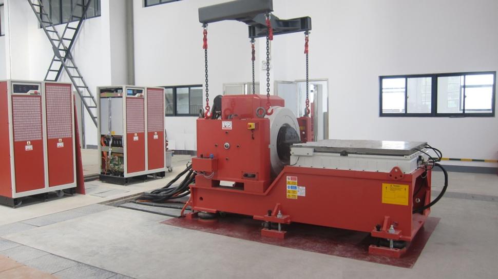 该设备为英国LDS公司生产的LDS-V9mkII振动台,由振动台台体、 控制系统(含功率放大器和控制仪)、水平滑动台/扩展台面、循环水冷却系统、供气系统及电站等组成,功率放大器由电站供电,根据控制仪的控制信号驱动振动台对被测试件进行规定的激励,被测设备或结构安装在扩展台面(垂直激励)或水平滑台(水平激励)上,循环水冷系统对振动台的电磁线圈进行强制冷却,供气系统为振动台的空气弹簧隔振器提供压力空气。