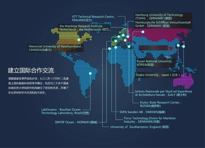 本所是国内最早进入国际船舶界两大学术组织-国际船模试验池会议(ITTC)和国际船舶和海洋工程结构会议-(ISSC)的单位,现已成为这两大学术组织的主要成员单位,在国际上拥有很好的学术地位和声誉。进入“十二五”,我所多名专家在IMO中任职,作为中国代表推广中国的研究成果,从而推动及参与国际规则的制定,在国际舞台上获取更多的话语权。