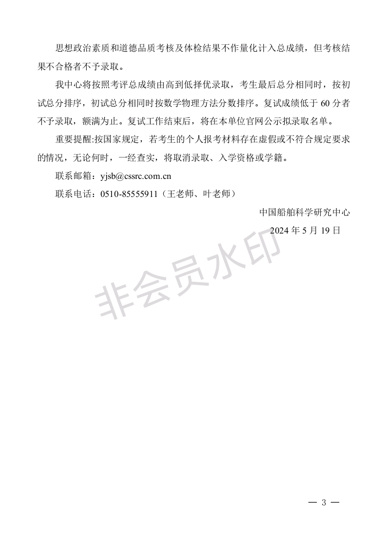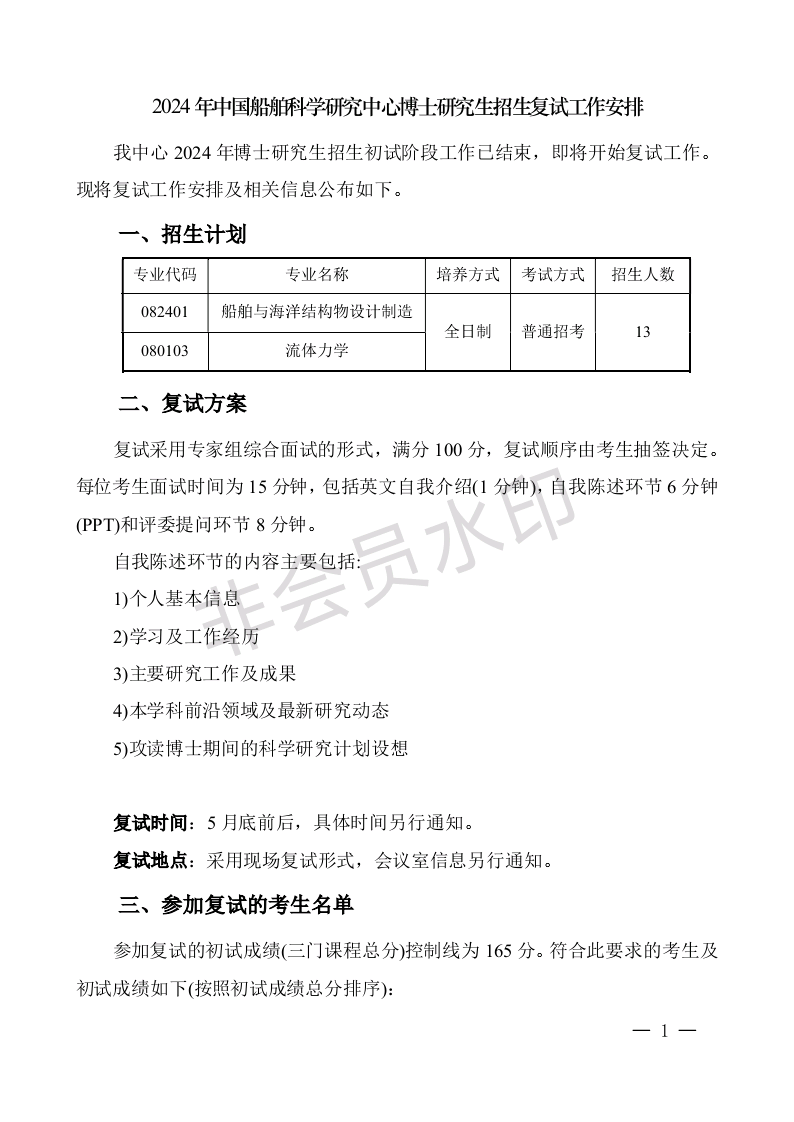 中国船舶科学研究中心2024年博士研究生招生复试工作安排
