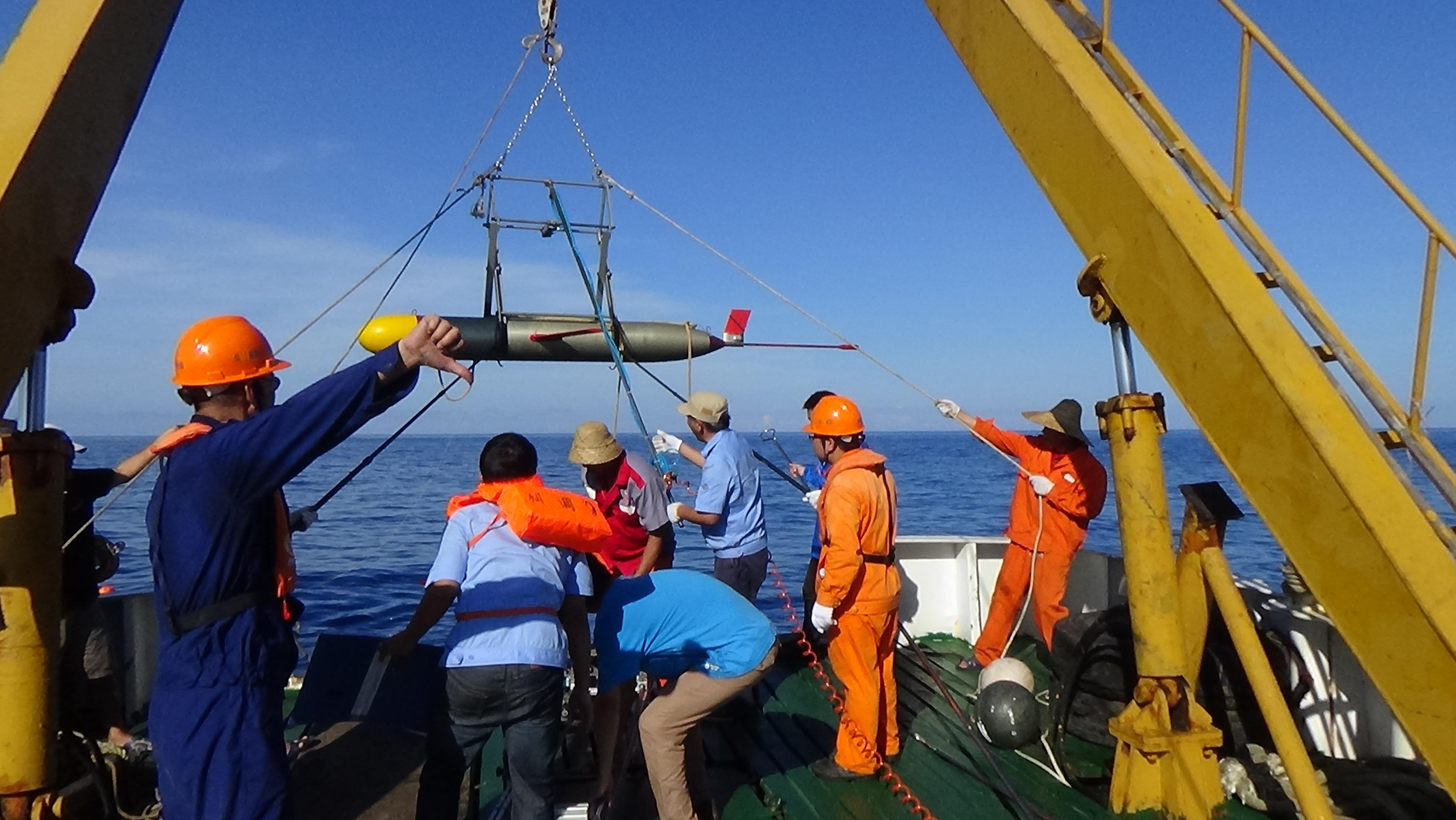 本次海试中,项目组先是在湛江硇洲岛附近海域开展了调试试验,其后在海南陵水以东120海里海域进行了100米级滑翔试验。试验内容包括单周期滑翔试验和多周期连续滑翔试验,最大下潜深度82米,最大滑翔速度超过1节,连续作业航程达3公里,获得了12个剖面的南海海域温盐深分布数据。